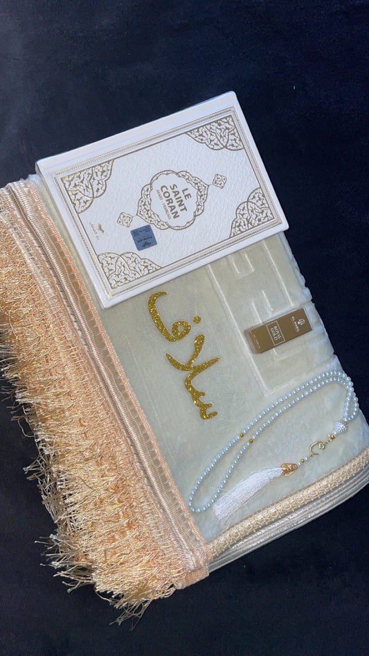 Le coffret SUNNA est composé d’un tapis de prière personnalisé, d’un coran d’un chapelet, d’un musc OU d’une citadelle du musulman et d’une boite coffret.